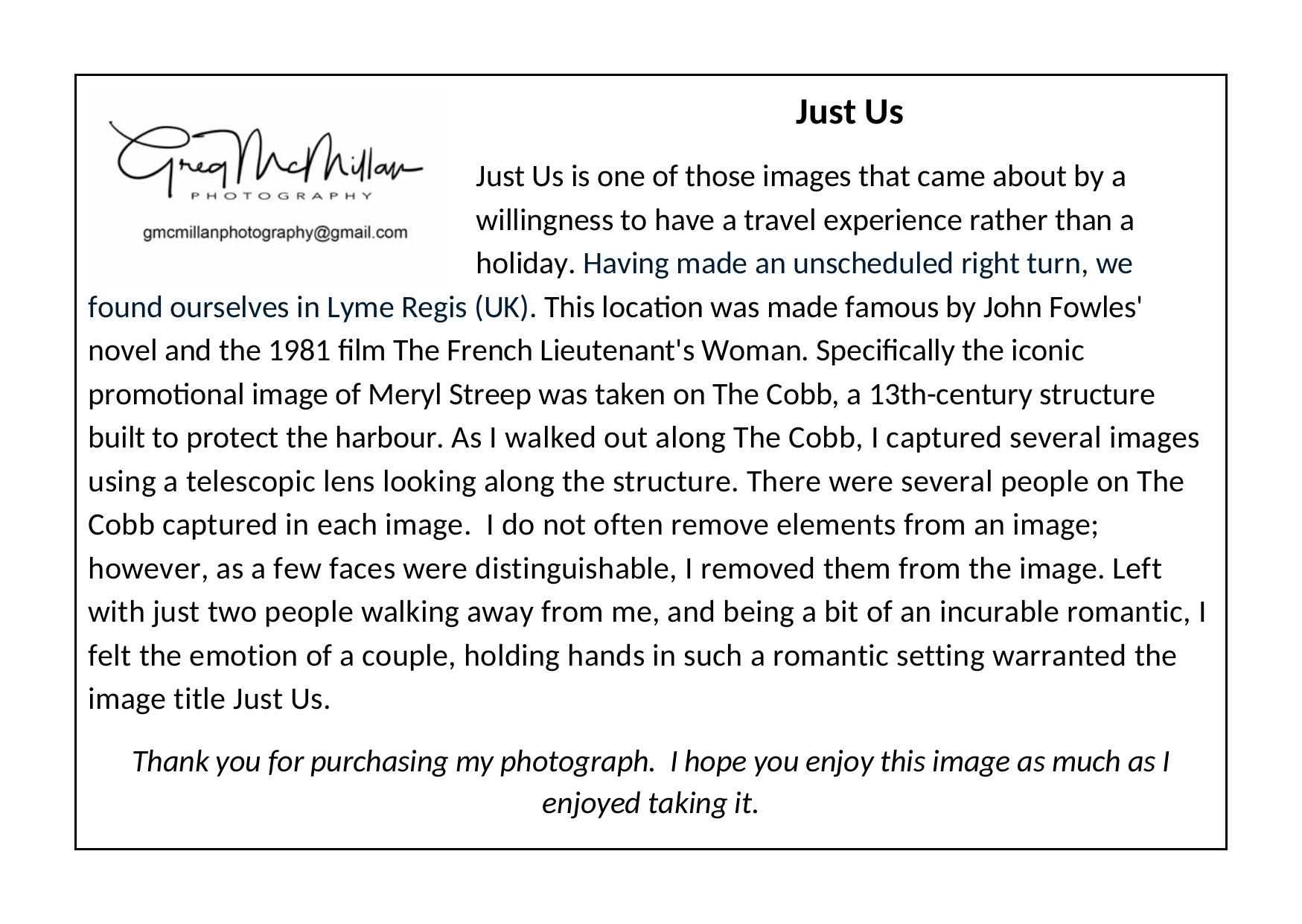 - On the back of each framed print is a sticker that provides a short story about the image. The sticker is 105mm*148mm in size.